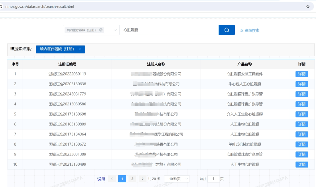 Then type in the product name in Chinese. For example, search the heart valve “心脏瓣膜“